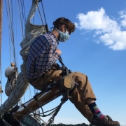 Pictured: Myself moving forward on the boom as I help to bring in Wendameen’s mainsail, Summer 2019. Wendameen is a schooner designed by John Alden and built in 1912 in East Boothbay, ME. She’s been all over the world, but now lives in Portland, ME where I worked aboard for a few summers. Photo credit to Vincent Aliquo, a good friend and excellent photographer.